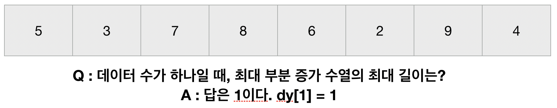 1. Dy Table을 정의한다. Dynamic Table의 index가 마지막 값일 때, 최대부분 증가수열의 최대 길이가 할당 됨