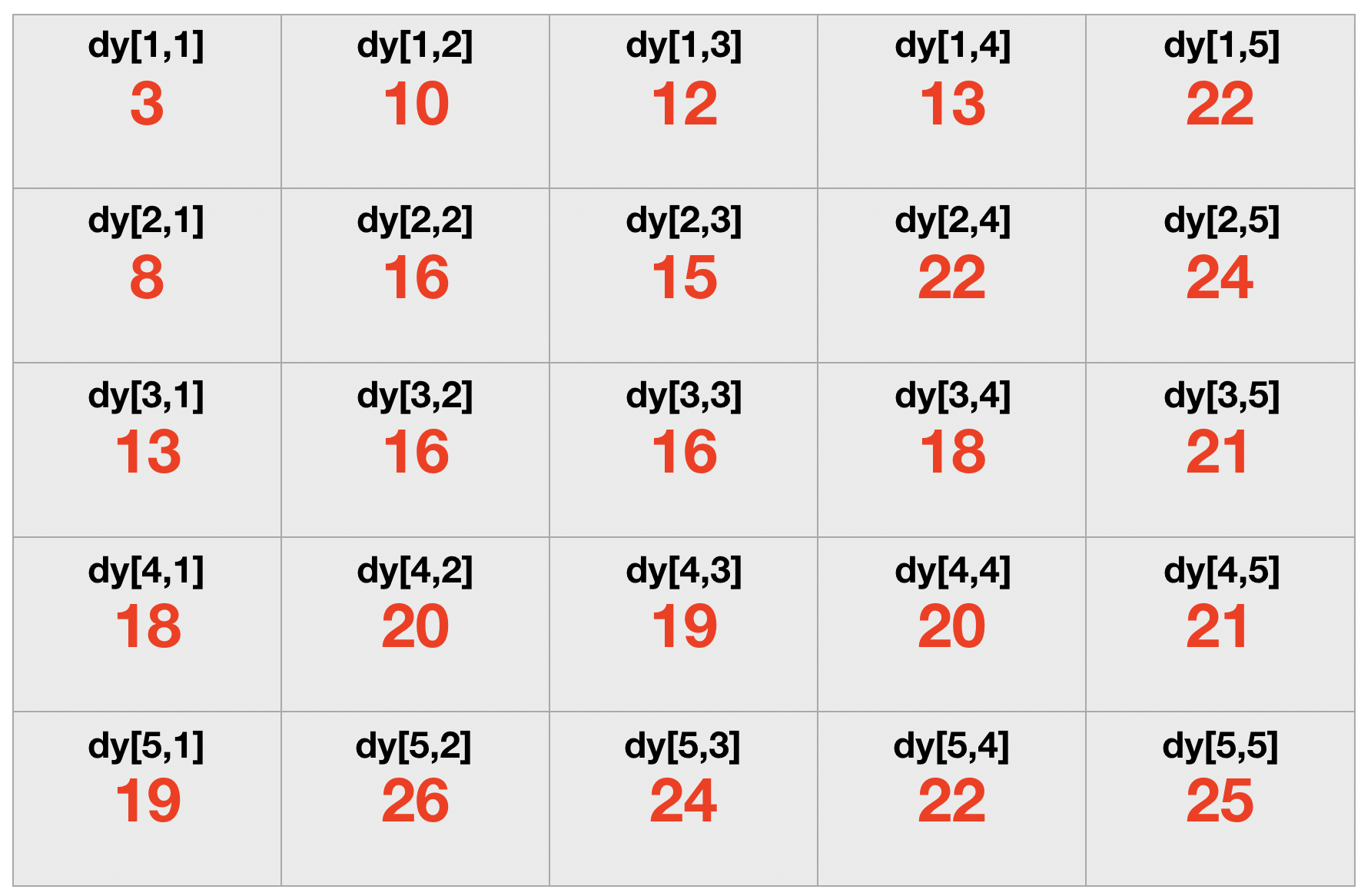 cout << dy[i][j]<<" ";