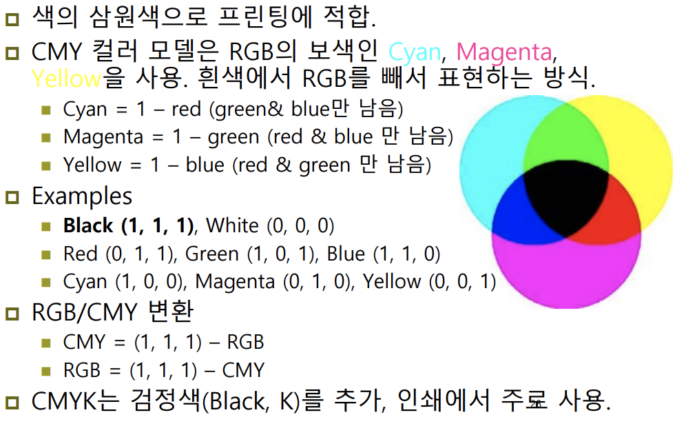 - CMY(프린터 컬러 모델, 색의 삼원색)