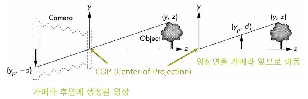 - Pinhole Camera Model에서 Image Plane을 앞으로 움직인 것.