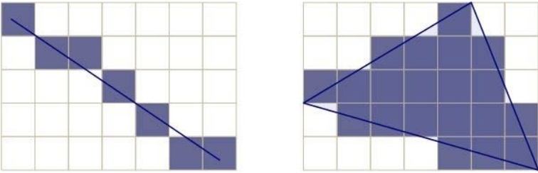 이 네모블럭을 본다고 삼각형과 선이 생각이 날까? 계단모양의 거친 경계선(Aliasing)문제로 인해서 생각이 안날 것이다. 따라서, Anti Anliasing을 적용시켜서 계단 현상을 최소화한다.