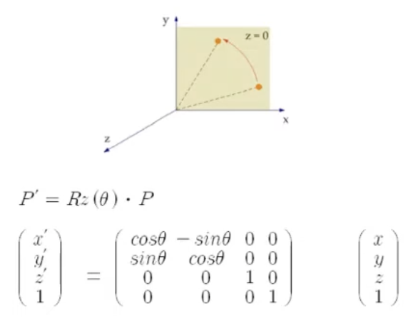 3D 그래픽스에서는 4x4행렬을 주로 사용하며, 이들은 (x,y,z,w)버텍스들을 변형하게 해준다. 이는 버텍스를 행렬로 곱함으로써 이루어진다.