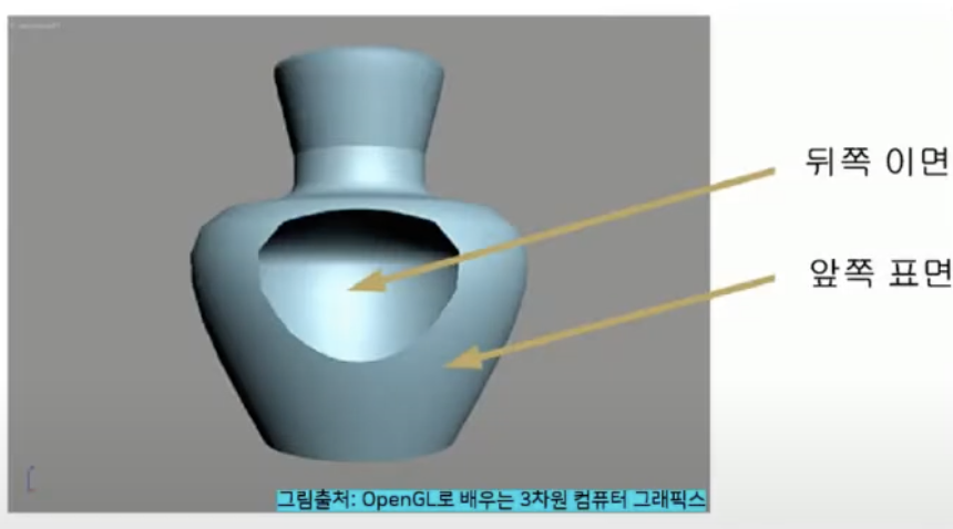 - 대부분 3차원 물체의 경우, 평면의 뒷면은 그릴 필요가 없다