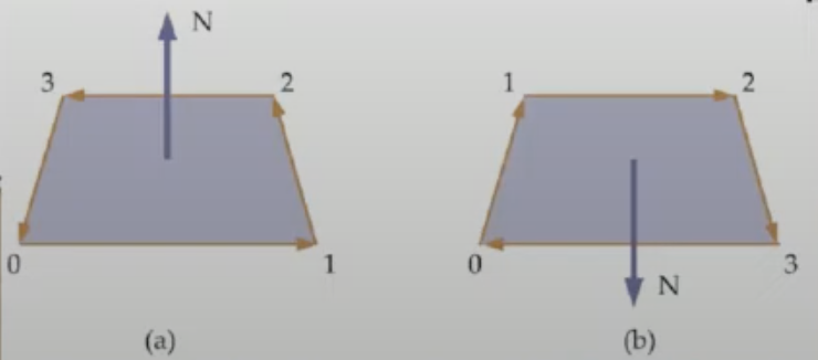 - 평면 표현시, 정점의 순서는 앞면에서 바라보는 기준으로 반시계 방향이다