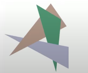 - 물체가 겹쳐져 있는 경우에 문제가 발생함(제일 앞의 삼각형이 무엇인지 이해하기 어려움) 그래서 등장한 것이 z버퍼 알고리즘