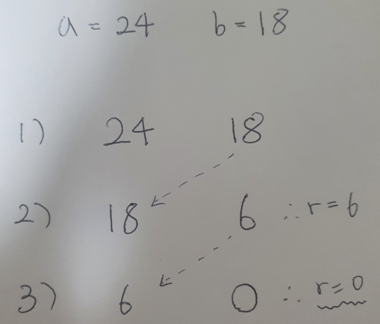 - r이 0이되면 그 때 b가 최대공약수이다.
